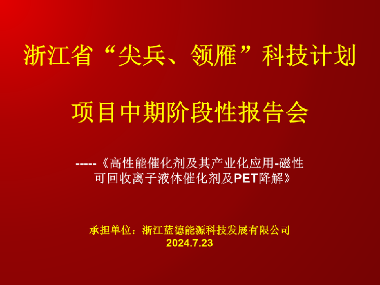Zhejiang Ldet Energy Technology Development Co., Ltd. har gennemført forsknings- og udviklingsarbejdet i Zhejiang -provinsens "Vanguard" og "leder" store videnskabelige og teknologiske projekter - "højprestationskatalysatorer og deres industrielle anvendelser - magnetiske genanvendelige ioniske flydende katalyster og nedbrydning af kæledyr". LDETs projekt F & U-team har med succes udviklet den første generation af "tre-in-one" Cobalt Nano-Metal-baserede ioniske flydende katalysatorforberedelsesteknologi, opnået effektiv kæledyrsfermentering og opnået BHET-monomerer med høj renhed. Piloteksperimentet er afsluttet og opnået gode resultater. Ved at sammenligne de fremskridt, der er gjort i det lille eksperiment med de offentlige data fra det hollandske selskab ornica, har de opnåede resultater dybest set nået det internationale avancerede niveau. Vores selvudviklede nano-metalbaserede ioniske flydende katalysatorer har udforsket en verdensledende innovativ sti til effektiv genanvendelse af lukket sløjfe ved hjælp af kemiske metoder til opnåelse