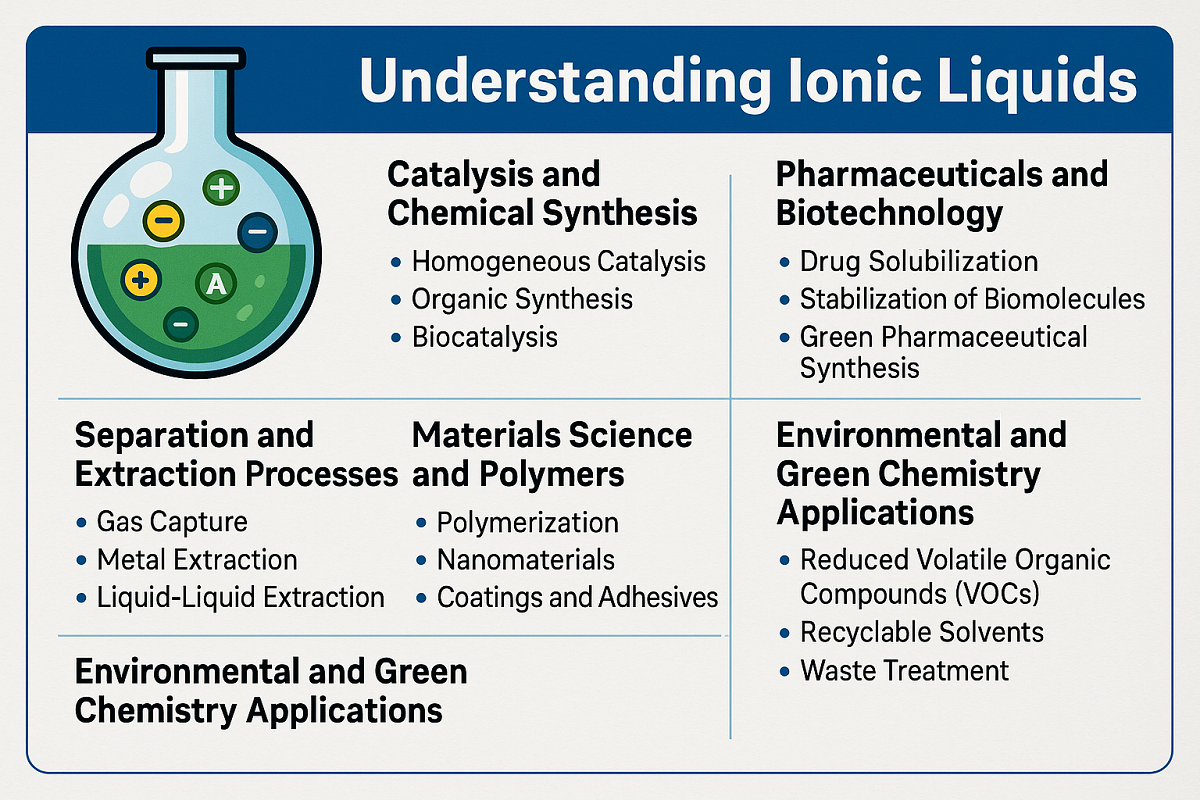 Ioniske væsker (IL'er) er dukket op som en transformativ klasse af kemiske forbindelser i moderne industri. Disse salte, der udelukkende består af ioner, forbliver flydende ved relativt lave temperaturer, ofte under 100°C. Deres unikke egenskaber - inklusive ubetydeligt damptryk, høj termisk stabilitet, indstillelig opløselighed og enestående ionisk ledningsevne - gør dem til attraktive alternativer til traditionelle organiske opløsningsmidler og reagenser. I løbet af de sidste to årtier har ioniske væsker udvidet sig fra nichelaboratorieforskning til en bred vifte af industrielle applikationer, der har påvirket områder fra katalyse til energilagring, lægemidler og materialebehandling.